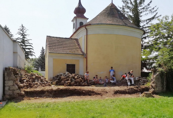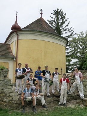 Seit einiger Zeit befand sich die Mauer hinter der Kirche in Mitterndorf/F. in derart schlechtem Zustand, dass bereits Einsturzgefahr bestand. Im Frühjahr ist die Pfarre mit dem Anliegen an die PTS Himberg herangetreten, ob der Fachbereich BAU beim Abtragen der Maurer behilflich sein könne.