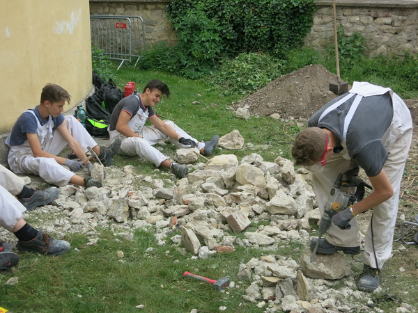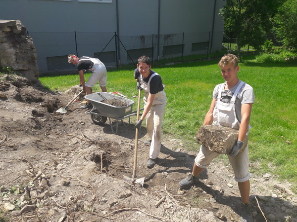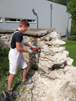 Im Mai 2018 gingen die „PTS-Maurer“ an die Arbeit. In drei schweißtreibenden und intensiven Arbeitstagen wurde, unter der Leitung von Fachbereichsleiter Volker Giefing, die Mauer abgetragen und der Bereich für den Wiederaufbau vorbereitet.
